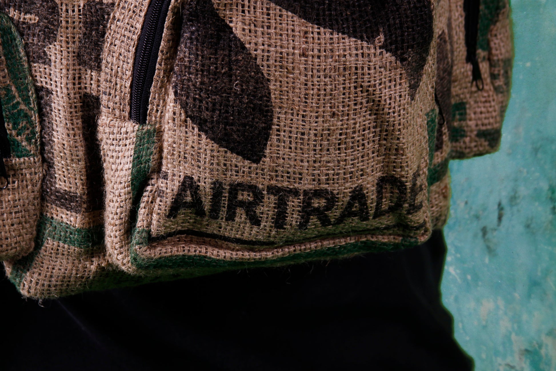 Coffee Bag Backpack. Up-cycled from Guatemalan Fair Trade Jute Coffee Bags. 18 x 19 inches. Three exterior pockets. Lots of room inside. Padded Shoulder Straps. Unique, Durable, and Very Cool! Fair Trade.