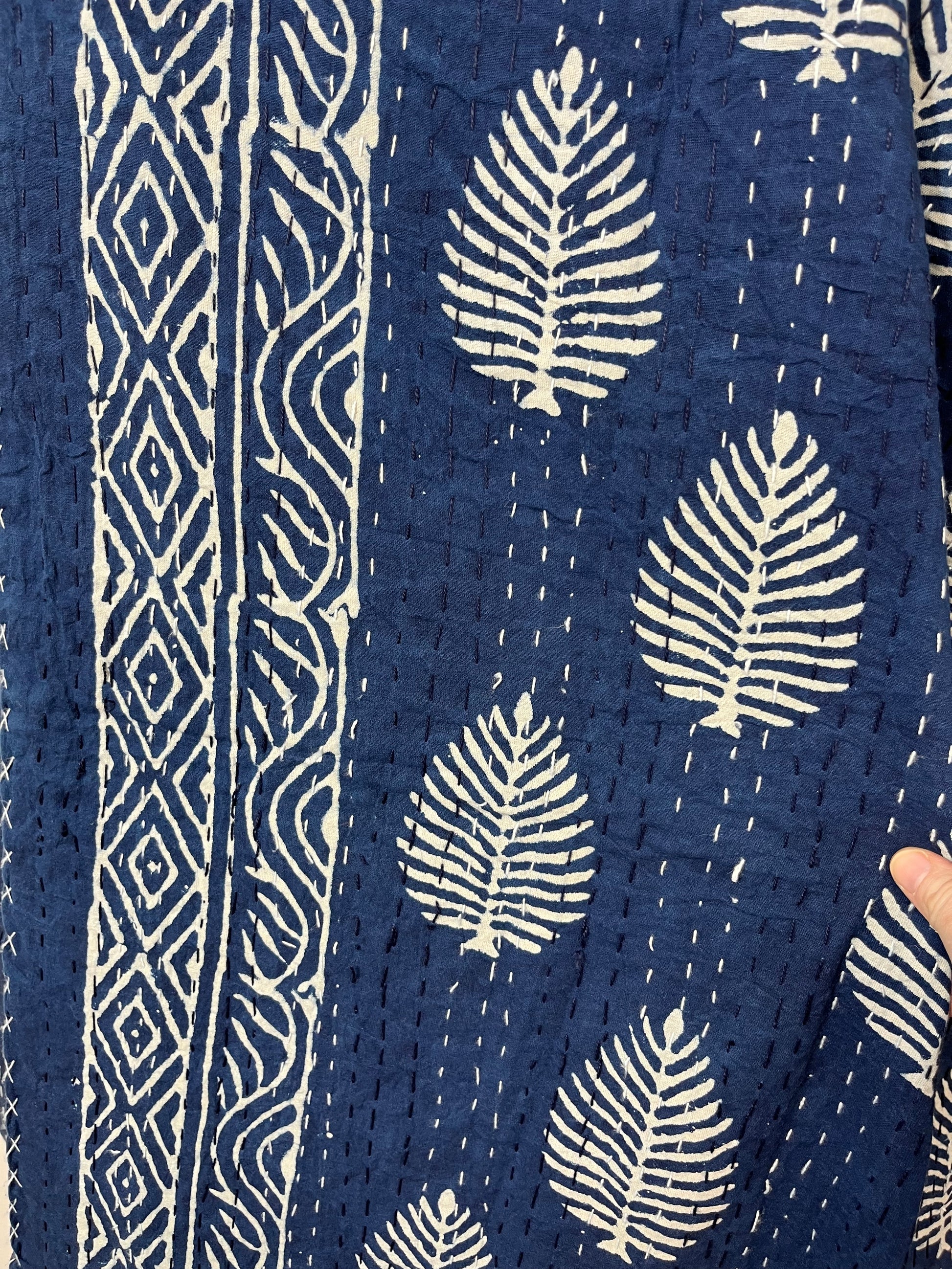 Kantha Love - Indigo Leaves Block Print Cotton Kantha Quilt