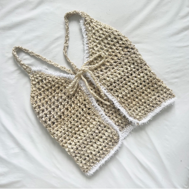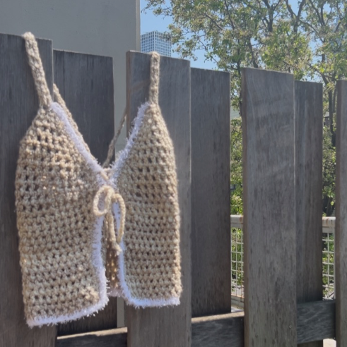 A bold statement piece, the Daisy is where effortless style meets artisanal design. Handcrafted using a chunky textured yarn in a rich linen tone, this top features a flattering tie-front silhouette and soft, dramatic fringe detailing along the edges. Its sculptural form accentuates curves while remaining lightweight and breathable — the perfect blend of cozy and chic.